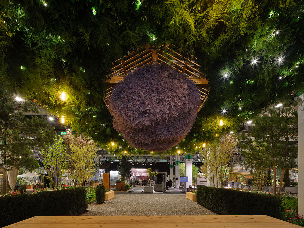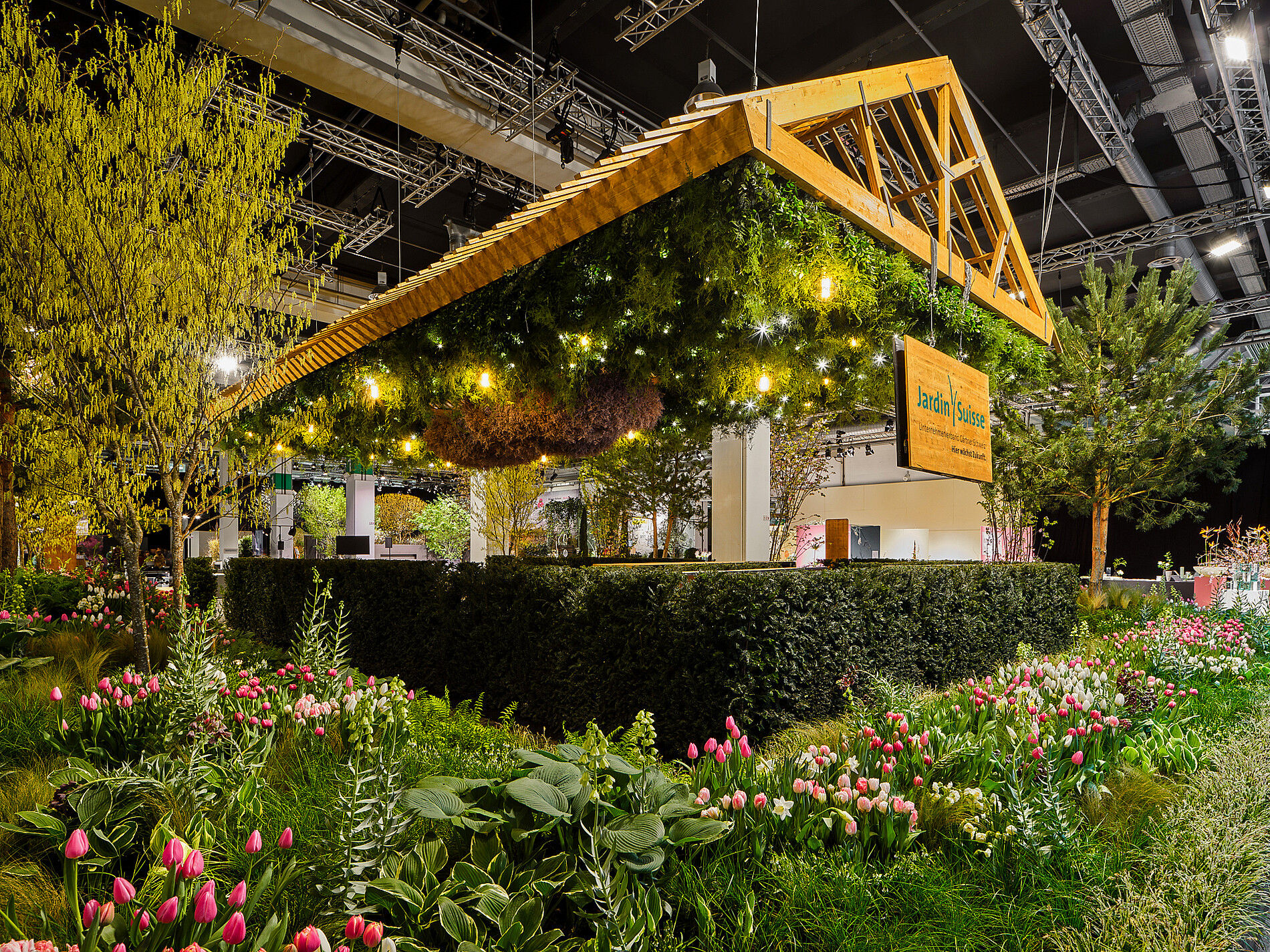 Im Rahmen eines Wettbewerbs wird die JardinSuisse-Standgestaltung jeweils ausgeschrieben, eine Jury bestimmt die besten Entwürfe. Für das Jahr 2020 hatte das Projekt «GARTENhaus –hausGARTEN» den Zuschlag erhalten. Es überzeugte mit schlichter und klarer Gestaltung. Verantwortlich dafür zeichnete der Landschaftsarchitekt Pascal Eberle. Das Konzept beinhaltete ein abstraktes Gebäude mit dicht begrüntem Dach, welches von einer üppigen Pflanzfläche umfasst war. Dieser Showgarten präsentierte das Zusammenspiel zwischen Innen- und Aussenraum und löste mit üppigen Blütenpracht bei den rund 58`000 Messebesuchenden Frühlingsgefühle aus.